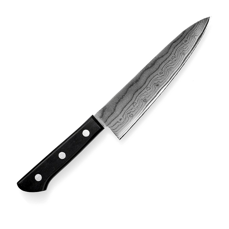 Profesionální šéfkuchařský nůž řady TOJIRO DP ECO Damascus s délkou čepele 180 mm. Šéfkuchařské nože jsou univerzální nože větších rozměrů, s konstrukcí Full-Tang, ergonomicky tvarovanou rukojetí a výborným vyvážením nože, které nesmí chybět v profesionálním prostředí. Samozřejmostí je špičková ostrost. Konstrukce a materiál nože je speciálně určen pro každodenní krájení a sekání velkého množství potravin.
