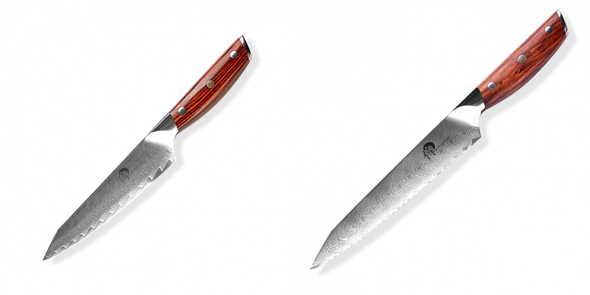 Tento damaškový nůž je užitečnou alternativou velkého šéfkuchařského nože v okamžiku kdy potřebujete přesné řezy, nebo například krájení zelených fazolí nebo jiné menší zeleniny a ovoce. Jsou vhodné též pro špikování a krájení masa. Zaoblené ostří umožňuje mírné kývání při řezu. Jeho ostrost je ideální pro přípravu sendvičů všeho druhu. Dlouhá čepel a rukojeť západního stylu Vám poskytne tu nejlepší kontrolu při řezání a krájení. Japonské umění, preciznost a nové technologie činí tento nůž z damascénské oceli ( damascus steel ) jedinečným a nenapodobitelným.