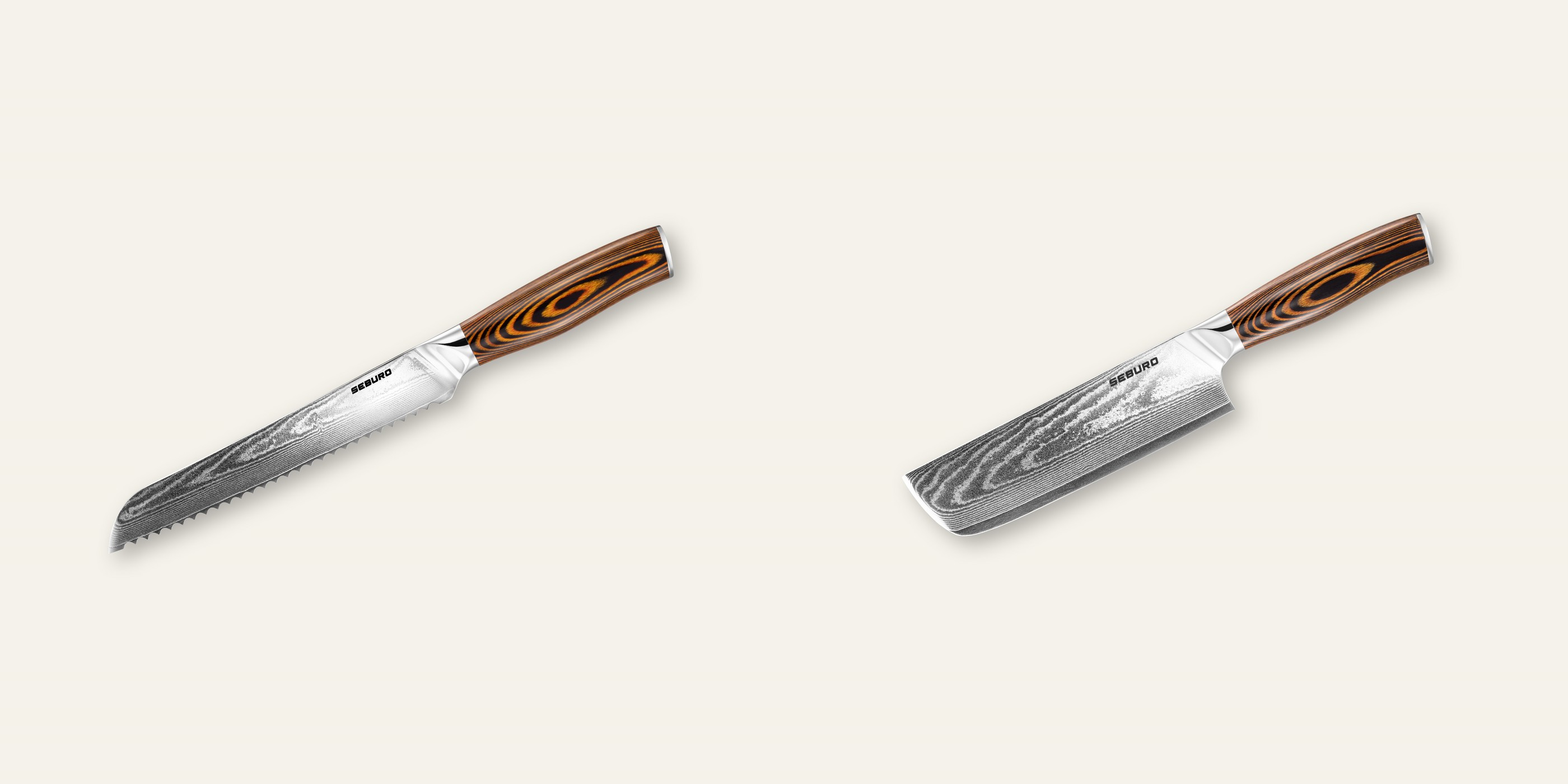 Premiová značka kuchynských nožov SEBURO predstavuje elegantnú klasiku japonských a európskych nožov, skladajúci sa z niekoľkých sérií: univerzálna SARADA, vynikajúca SUBAJA a nadštandardná HOKORI a HOGANI s rukoväťami z olivového a orechového dreva. Základom každého modelu je vysoko kvalitná oceľ s unikátnou geometriou čepeľou a ergonomickými rukoväťami. Naše nože spájajú tradičné prvky s inováciami, poskytujú pohodlie, štýl a neprekonateľný výkon vo vašej kuchyni. Objavte svet dokonalého krájania s nožmi SEBURO a užite si proces prípravy obľúbených jedál!