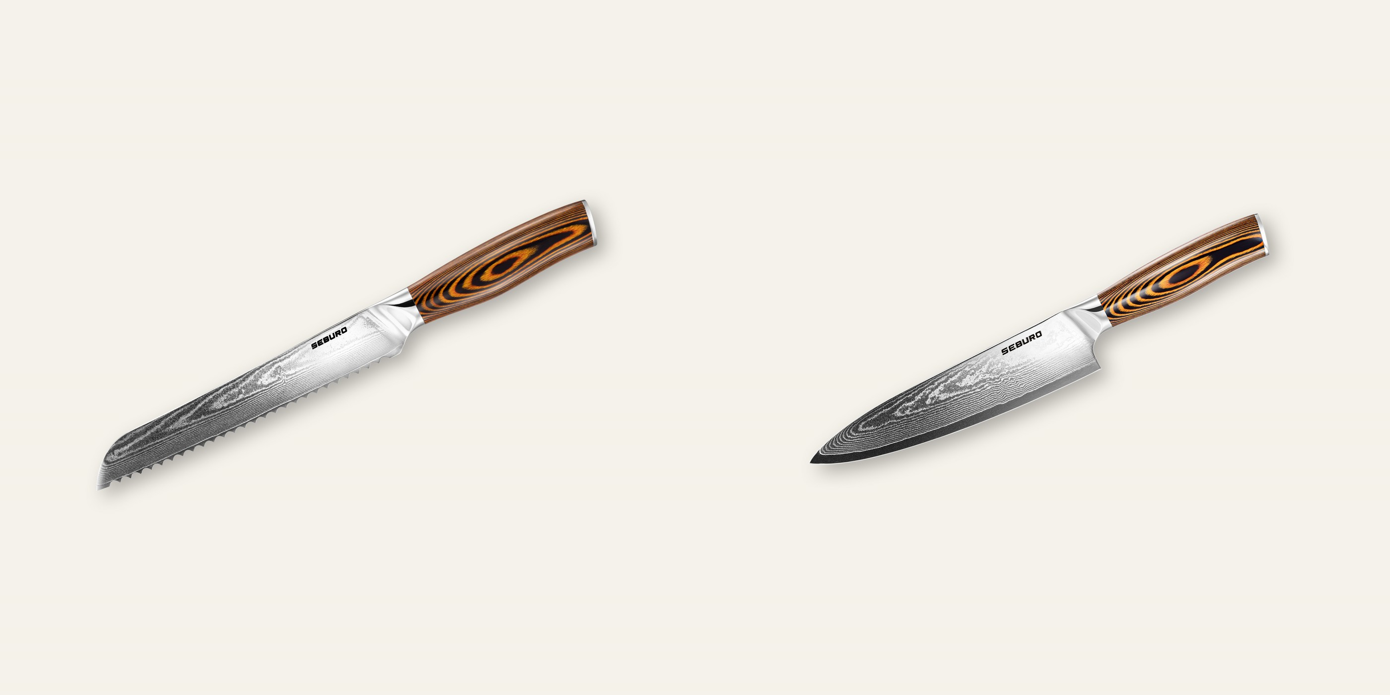 Premiová značka kuchynských nožov SEBURO predstavuje elegantnú klasiku japonských a európskych nožov, skladajúci sa z niekoľkých sérií: univerzálna SARADA, vynikajúca SUBAJA a nadštandardná HOKORI a HOGANI s rukoväťami z olivového a orechového dreva. Základom každého modelu je vysoko kvalitná oceľ s unikátnou geometriou čepeľou a ergonomickými rukoväťami. Naše nože spájajú tradičné prvky s inováciami, poskytujú pohodlie, štýl a neprekonateľný výkon vo vašej kuchyni. Objavte svet dokonalého krájania s nožmi SEBURO a užite si proces prípravy obľúbených jedál!