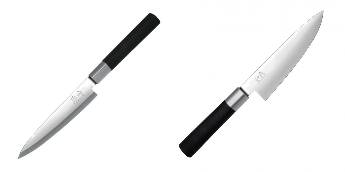 AKCIA 1+1 Plátkovací nůž KAI Wasabi Black Yanagiba 155mm + Nôž šéfkuchára malý KAI Wasabi Black 150mm